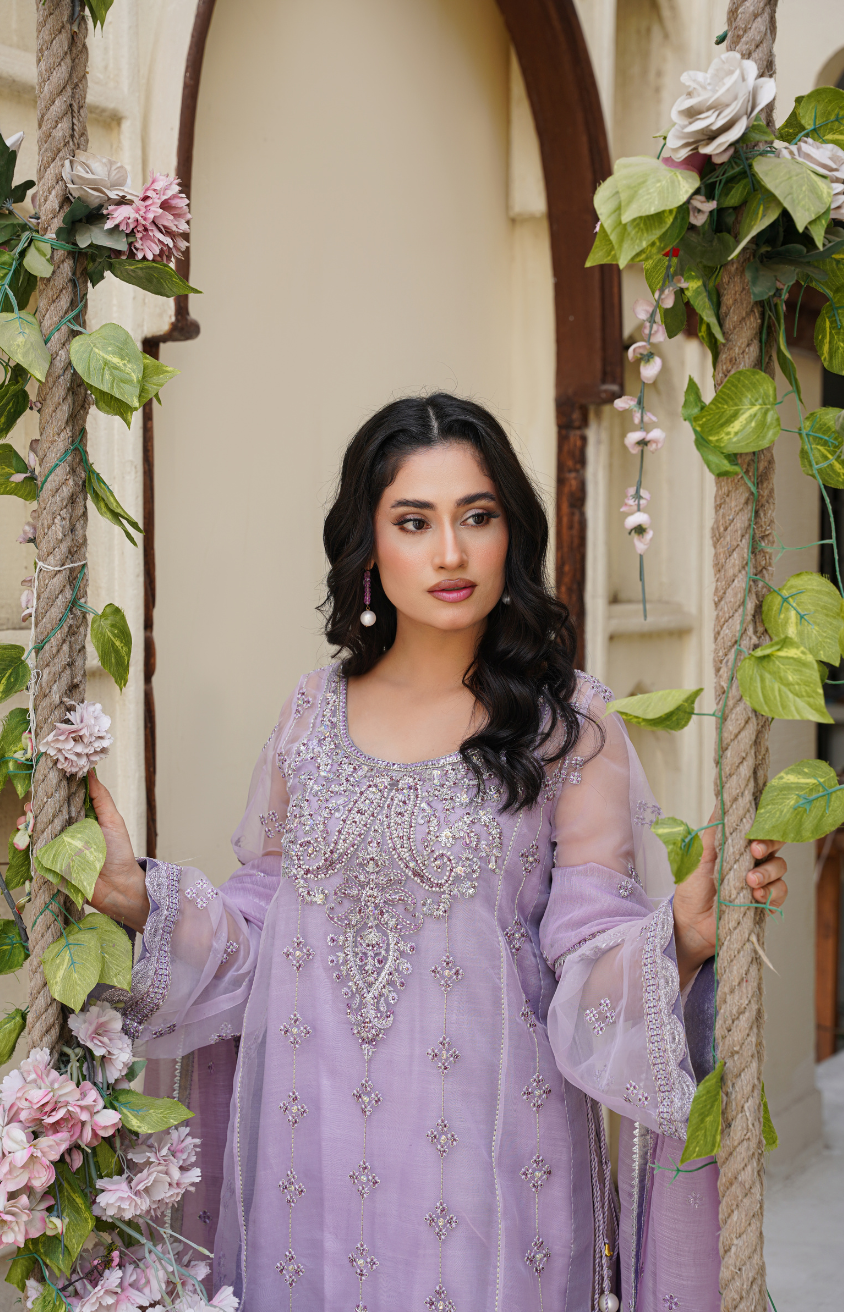 Shirt: Crafted in premium organza, providing a delicate and airy look.