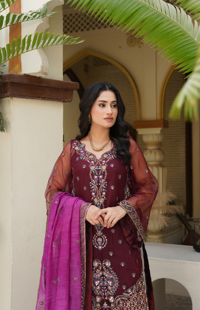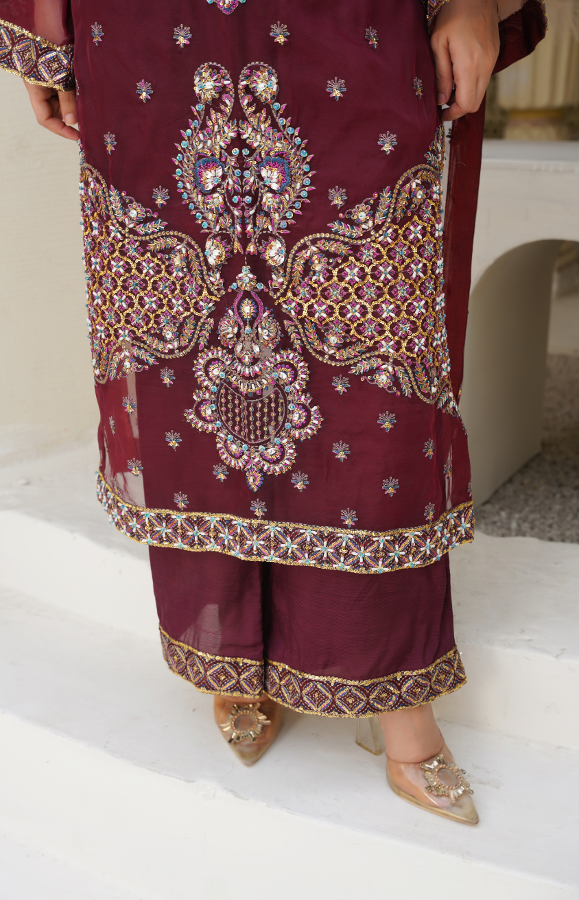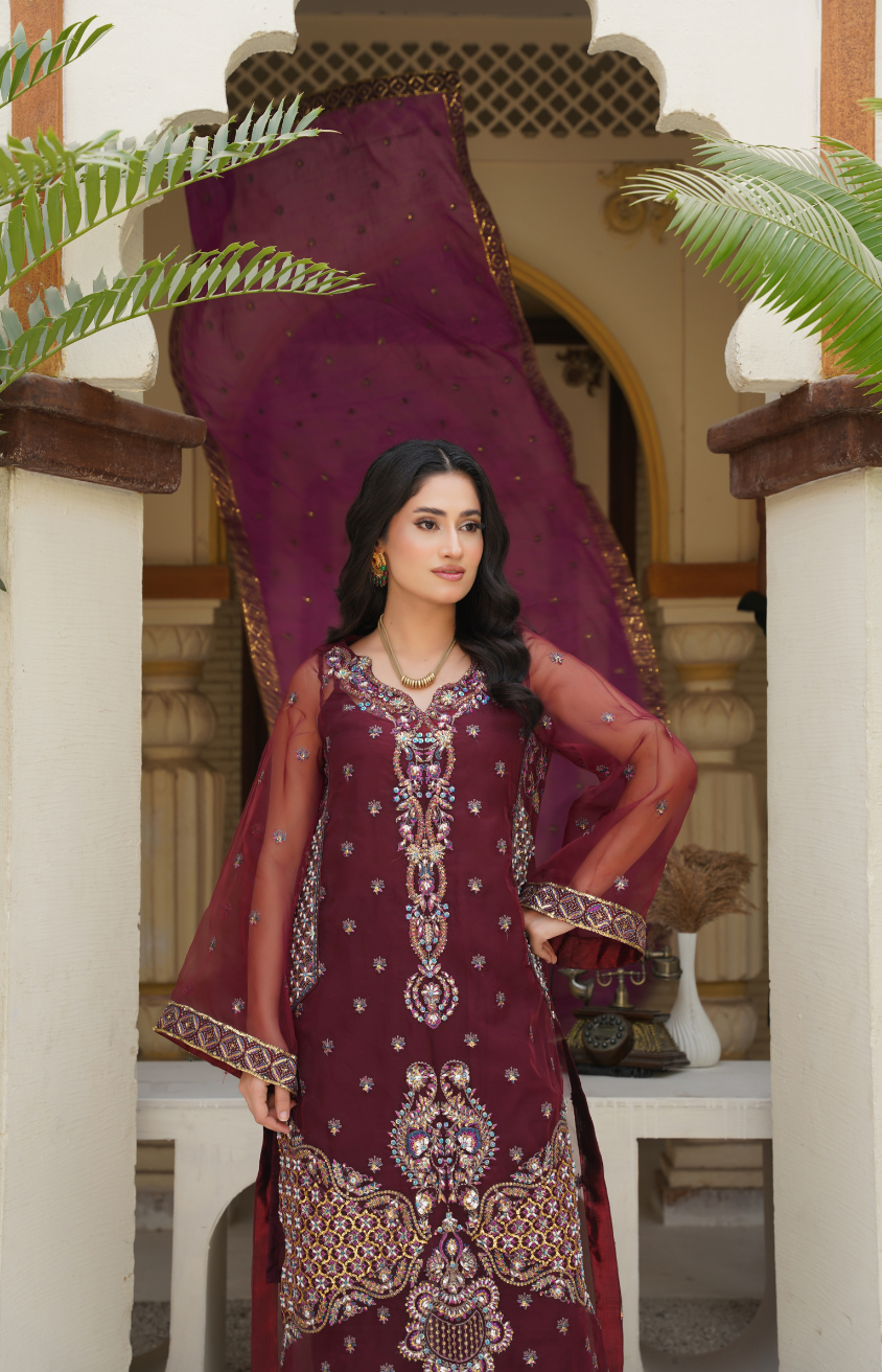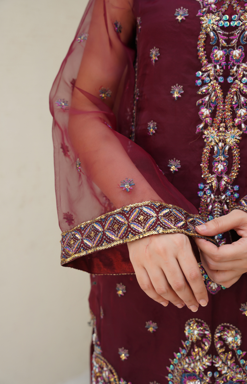 Color: Mehroon – a deep, regal shade perfect for weddings and festive occasions.