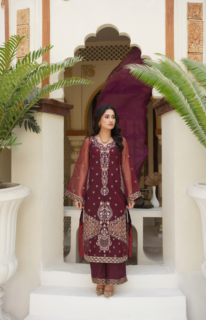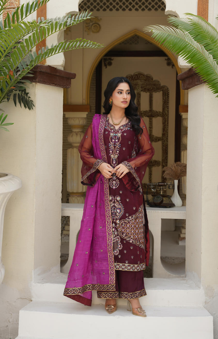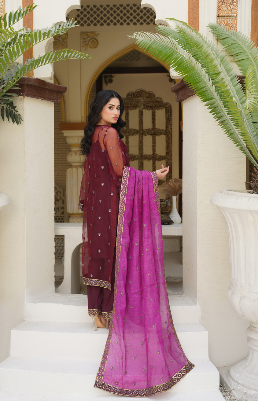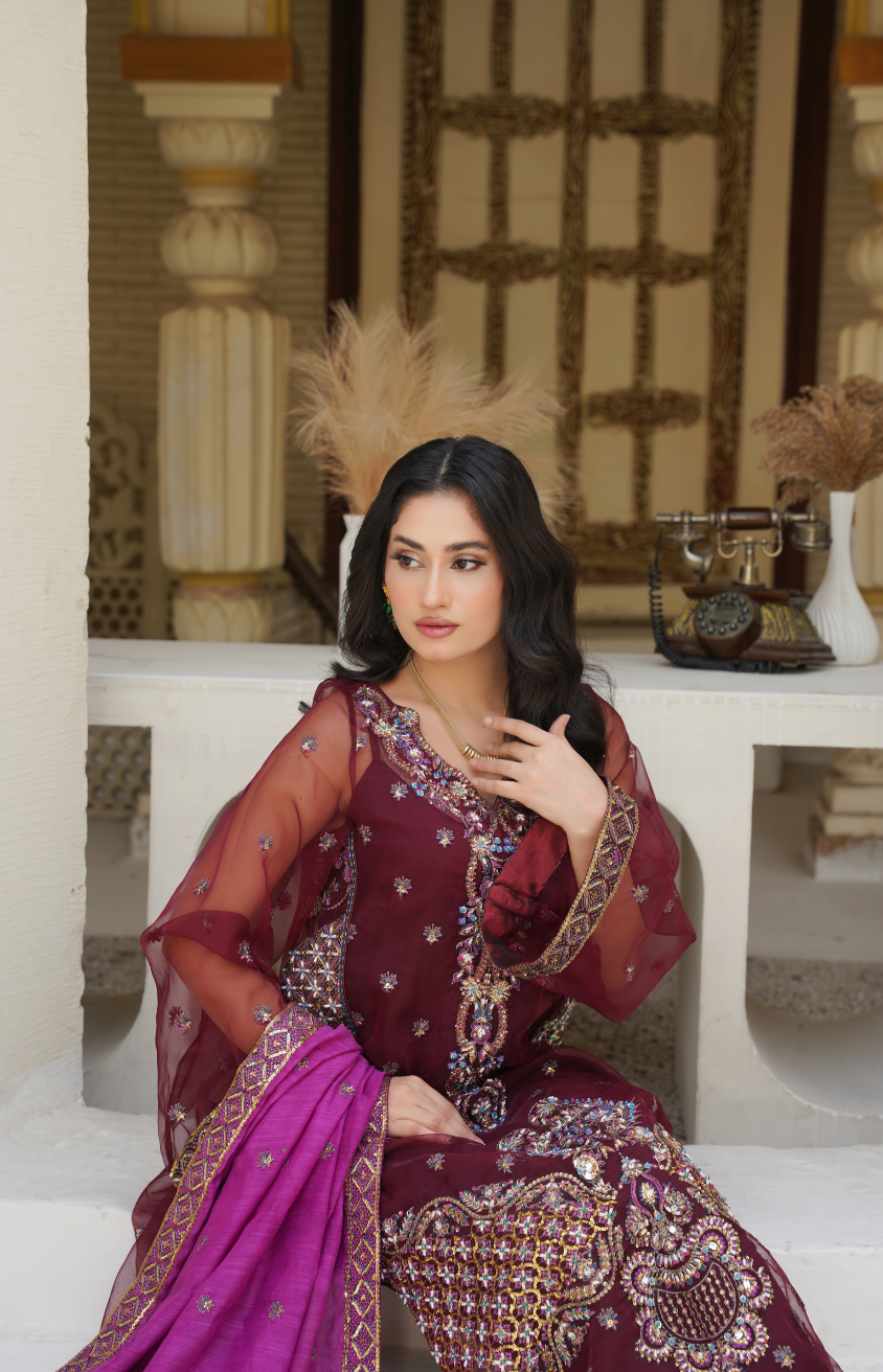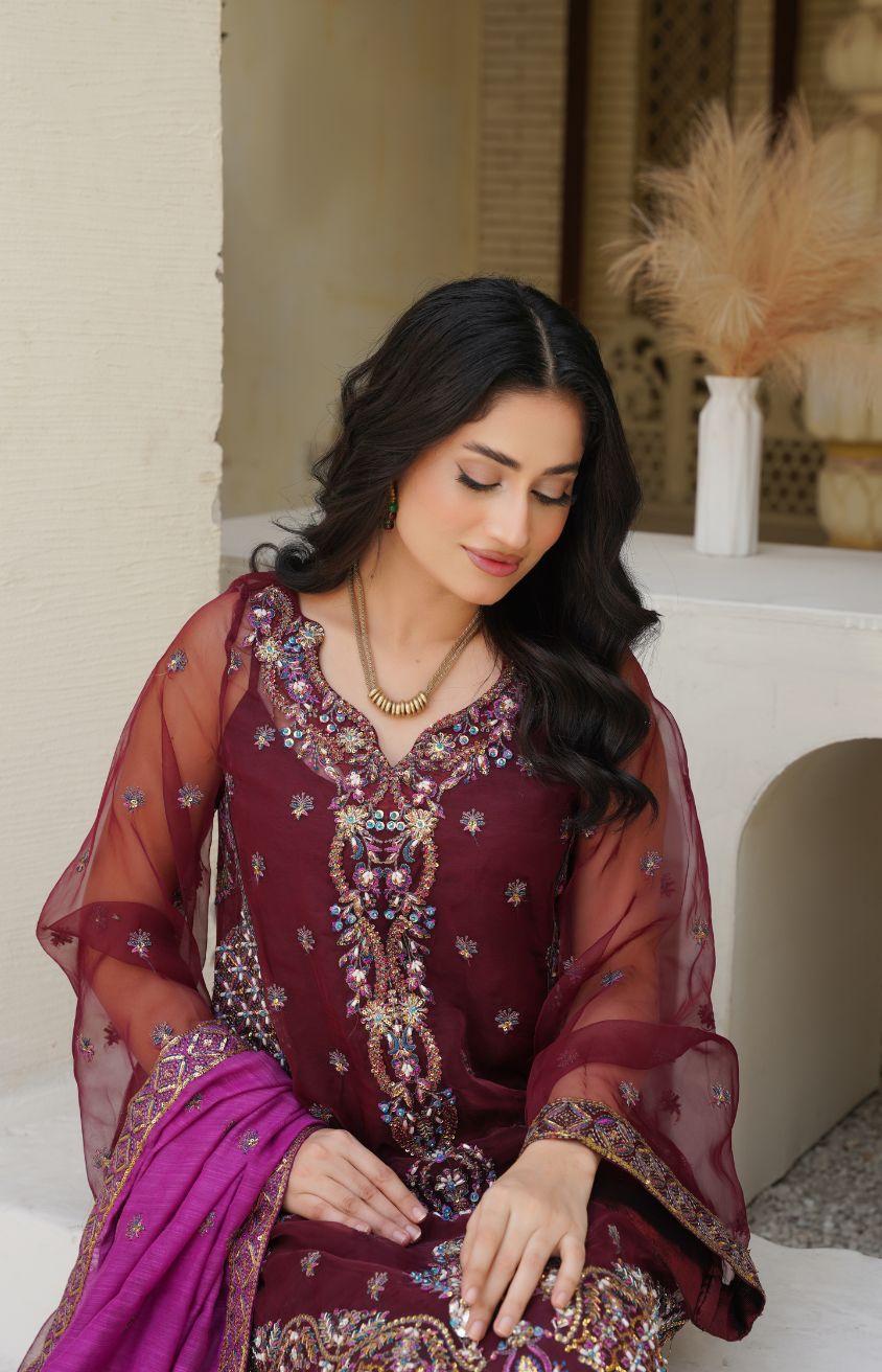 Color: Mehroon – a deep, regal shade perfect for weddings and festive occasions.