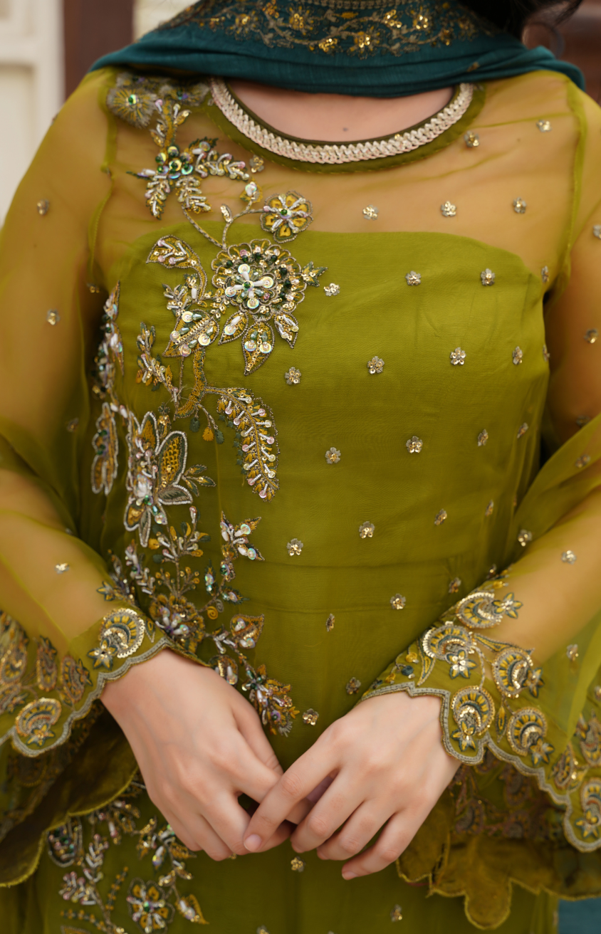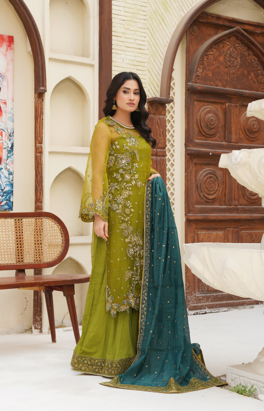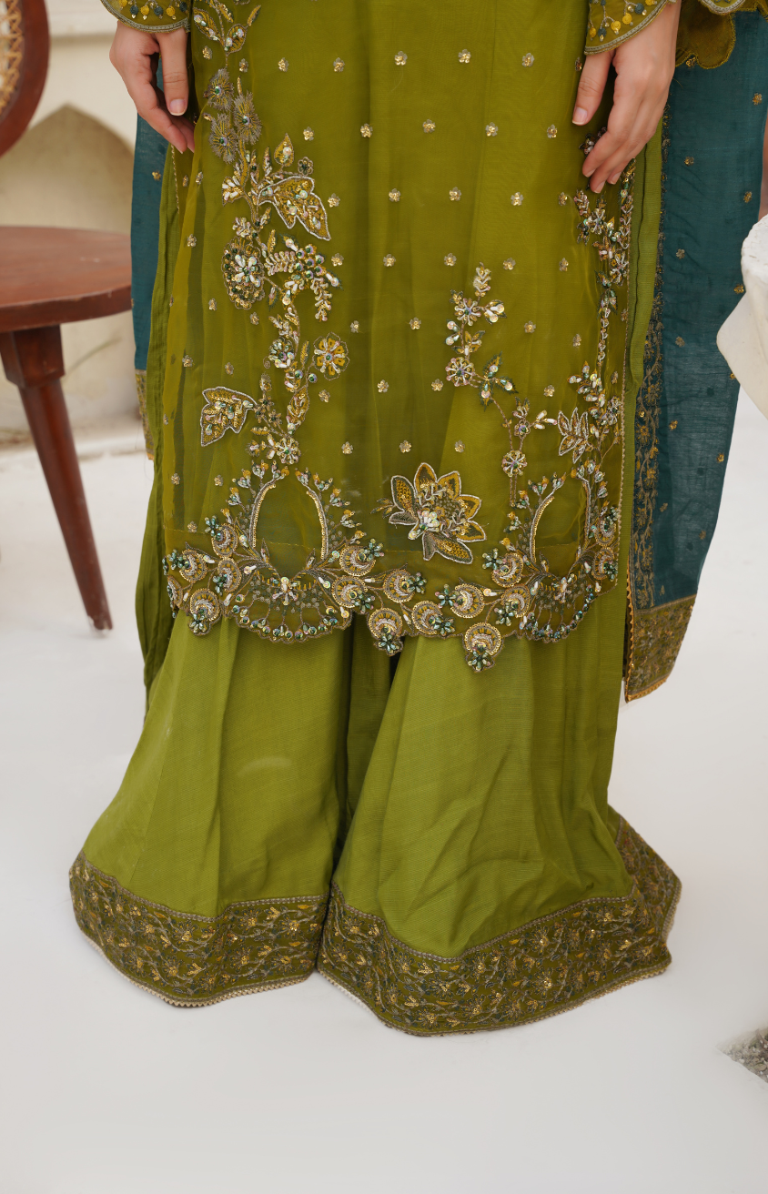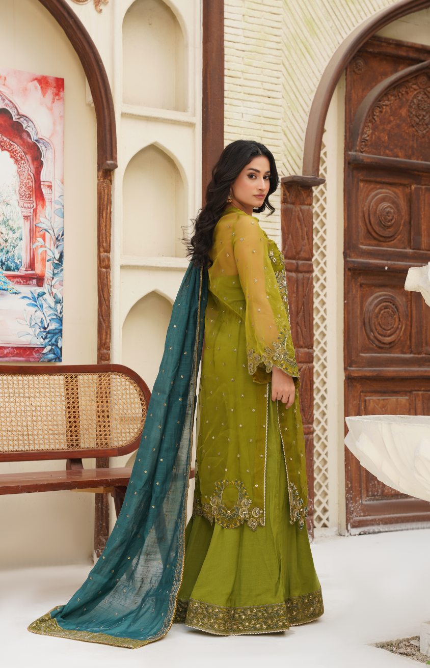 Set Includes: Shirt, Inner Sharara, Sharara, Dupatta
