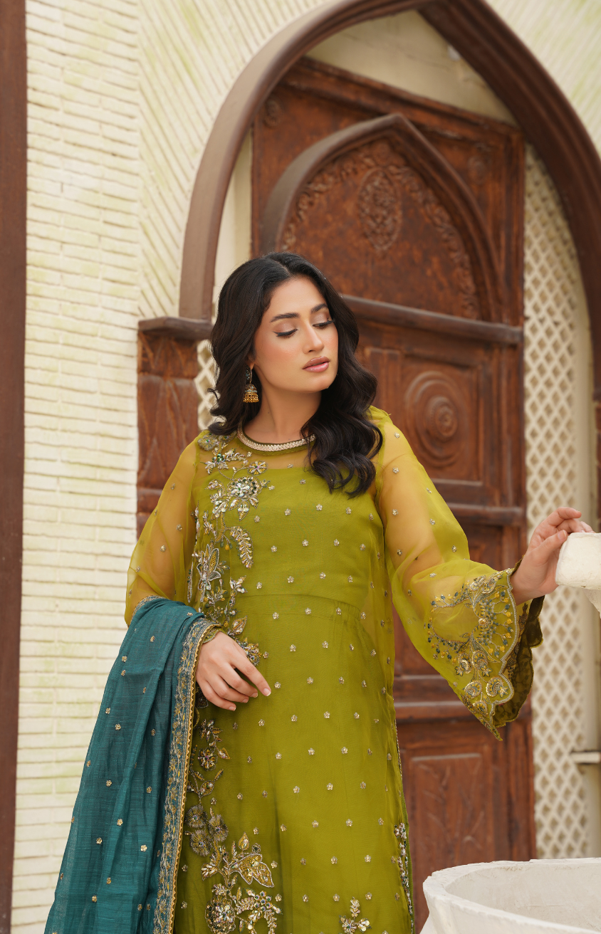 Color: Mehndi Green – a refreshing and vibrant shade perfect for festive occasions.