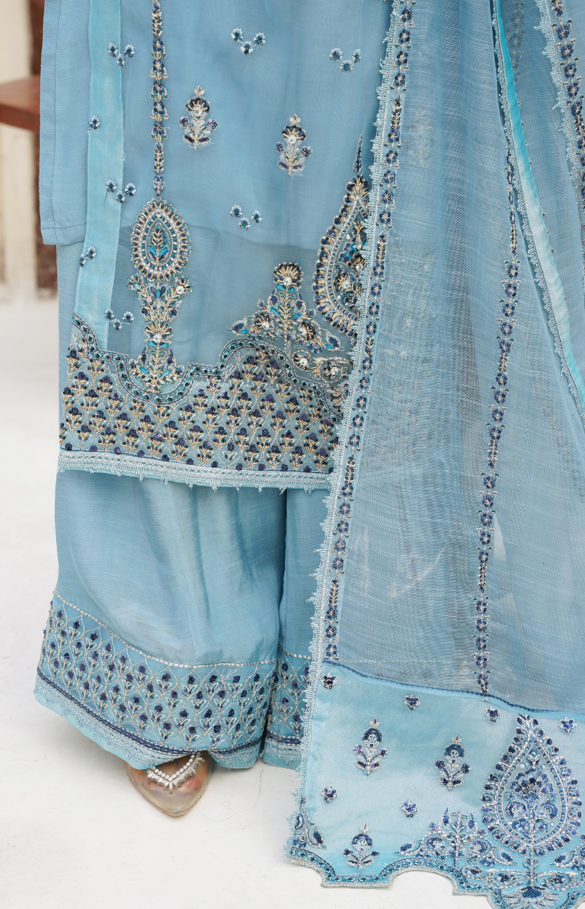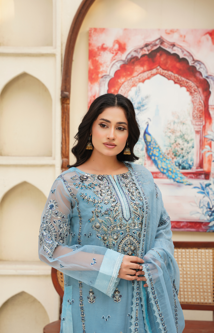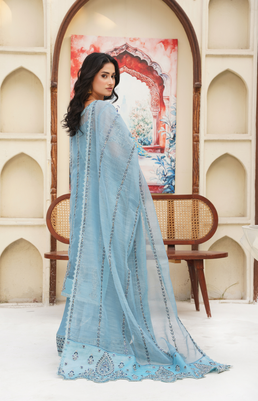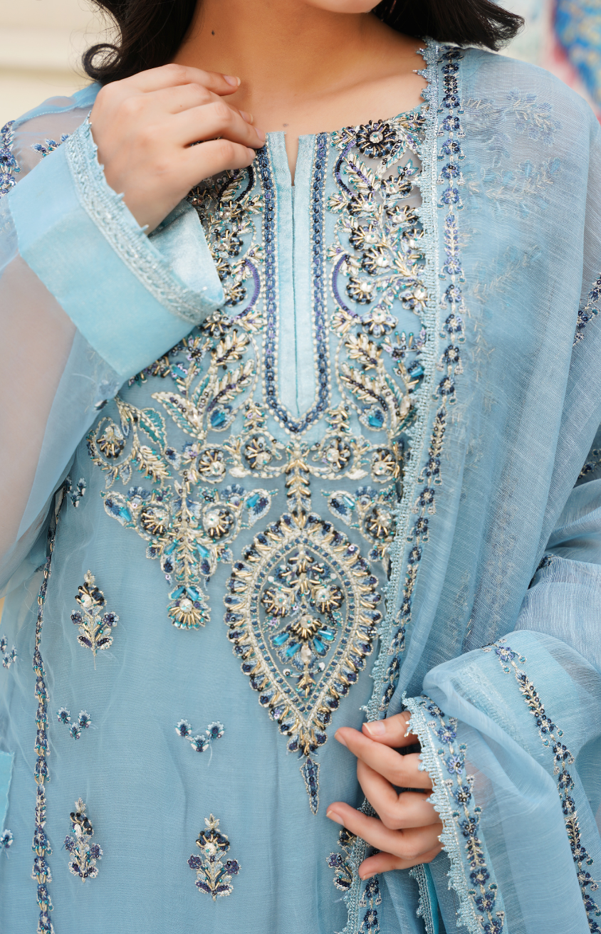 Color: Ice Blue – a soft, serene shade ideal for festive and celebratory occasions.