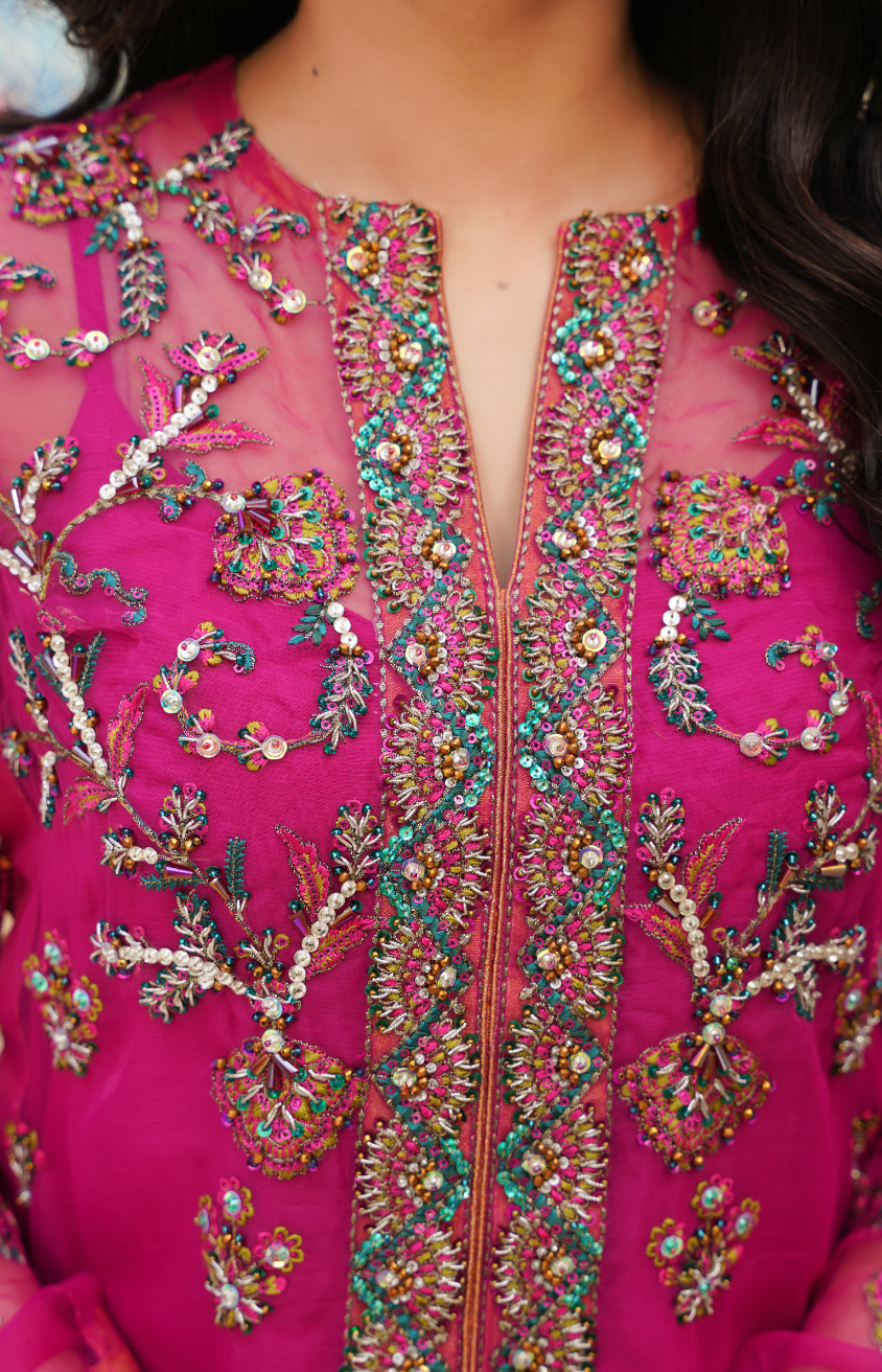 Color: Shocking Pink – a bold, vibrant shade that makes a striking statement at any event.