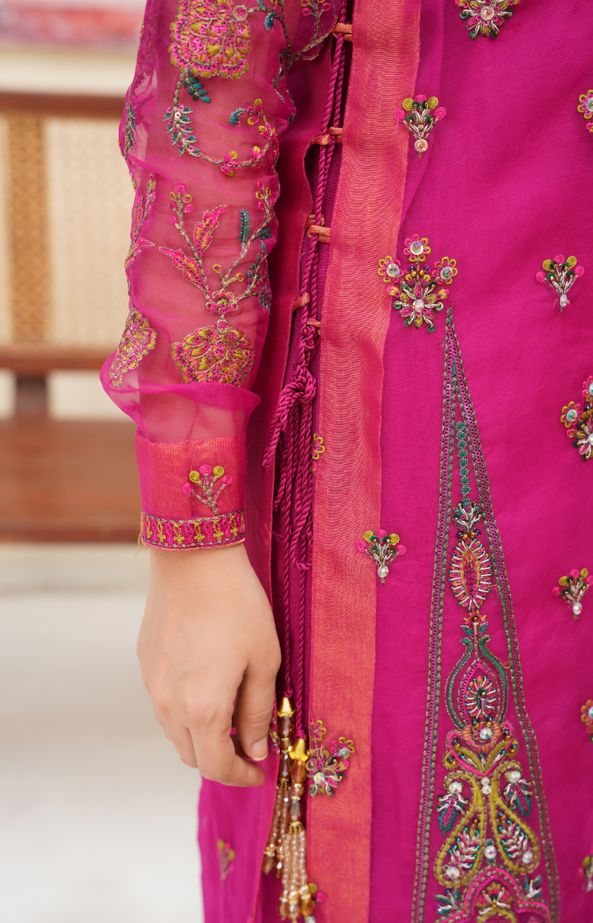 Ajaar: Crafted in luxurious Jamawar fabric, featuring intricate detailing and a rich texture.